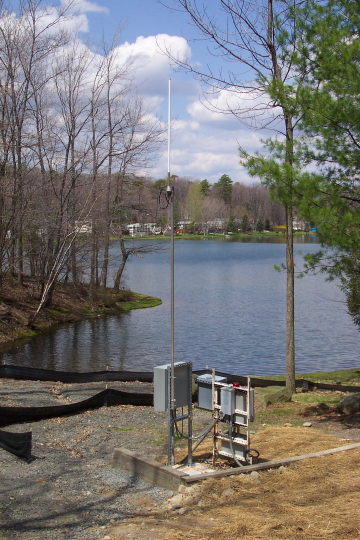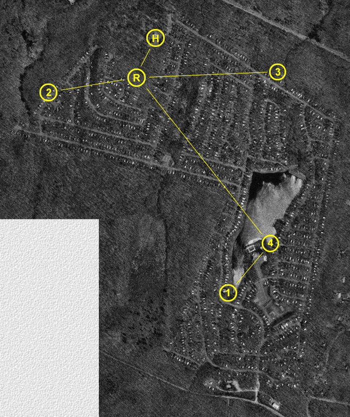 Welcome to Lake Adventure, a nice, quiet community in Pennsylvania. The sewage system for this area is composed of 4 pump stations that pump sewage water to the water treatment station. Communication between the treatment station and water pumps is handled wirelessly. We have a host radio (H) at our treatment center that is unable to directly communicate with surrounding pump stations due to the many elevation fluctuations of the terrain. To overcome this problem, we have set-up a repeater remote (R) in a central location to communicate with radios located in outlying pump stations. The repeater is assembled on a relatively high ground of the terrain in order to maximize its range. The repeater remote has been attached to a telephone pole in order to give it even greater range (see picture of repeater below). This repeater is responsible for communicating with pump stations 2, 3, and 4, which are located around the Lake Adventure Facility. The radio at pump station 4 acts as a relay for pump station 1, because the radio at this station can’t communicate directly with the repeater due to the terrain and remote location of the site Refer to the aerial picture above of Lake Adventure to get an overview of the host, repeater, and pump station locations.