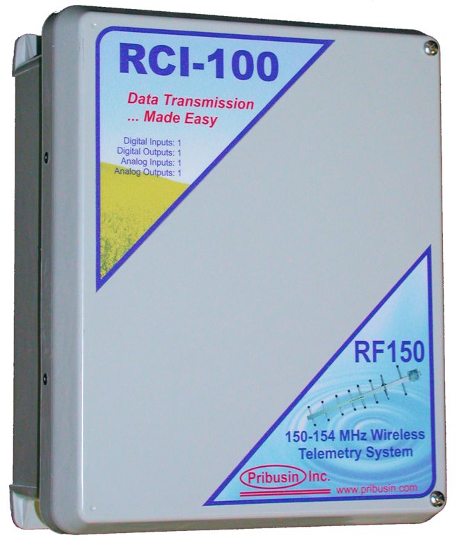 The RCI-XXX-RF9 uses license-free 900MHz spread-spectrum technology to reliably transmit and receive multiple signals between remote and host stations. Range is up to 12 miles. Units can be configured for stand-alone Point-to-Point or Host-to-Multi-Point operation. Industry standard communication makes the RCI compatible with popular SCADA software packages. In this configuration, a single PC host radio can access over 200 remote stations. The NEMA4X enclosure is suitable for outdoor applications. 120VAC or 24VDC operation. Affordably priced and easy to install. |